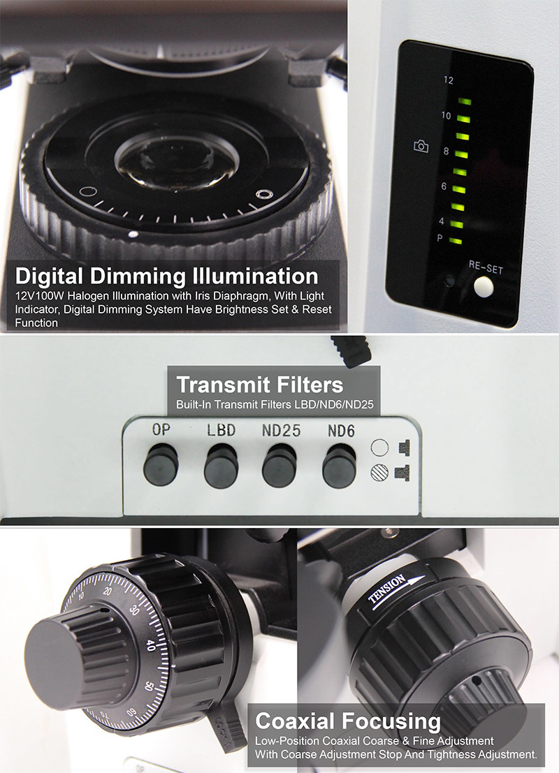 Reflected/Transmitted Body, Digital Dimming System With Light Indicator, Brightness Set & Reset Function, With Condenser Holder | | ● | |