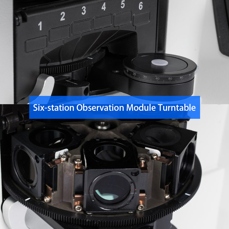 Multi Function Turret | Multi Function Turret Under Nosepice, With 6 Positions For Cubes Of Bright Field, Dark Field, Phase Contrast, Polarizing, Fluorescent View, Turning The Disc To Easily Switch Observation Methods | ● | |